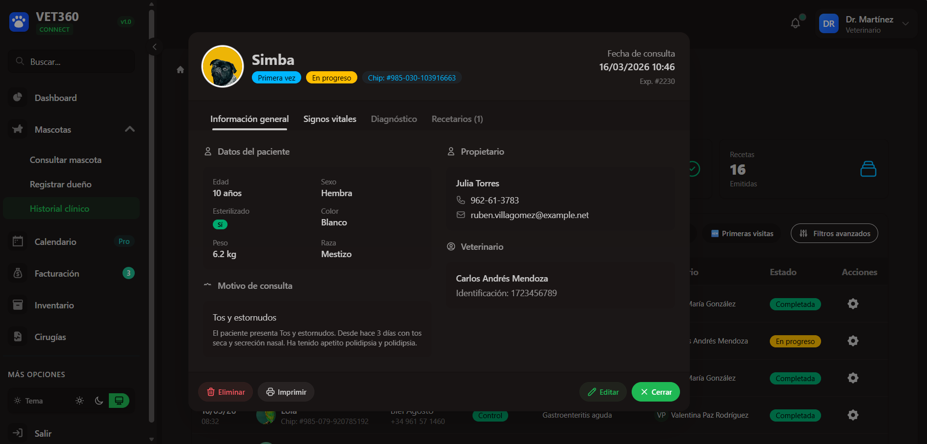 Aplicación web responsiva administrativa para el control clinico veterinarios, lleva un control de los insumos, calendario de consultas, entre otros